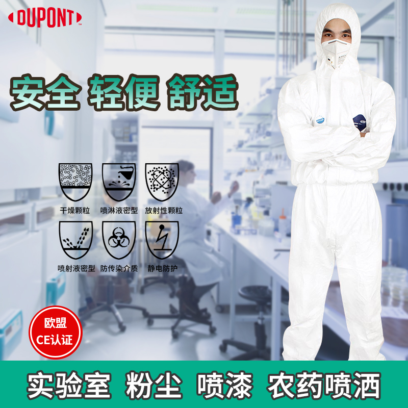 杜邦1422A工業(yè)連體帶帽防護服 防噴漆粉塵農(nóng)藥靜電玻璃纖維隔離衣 防護效果佳,輕便舒適,透氣性良好